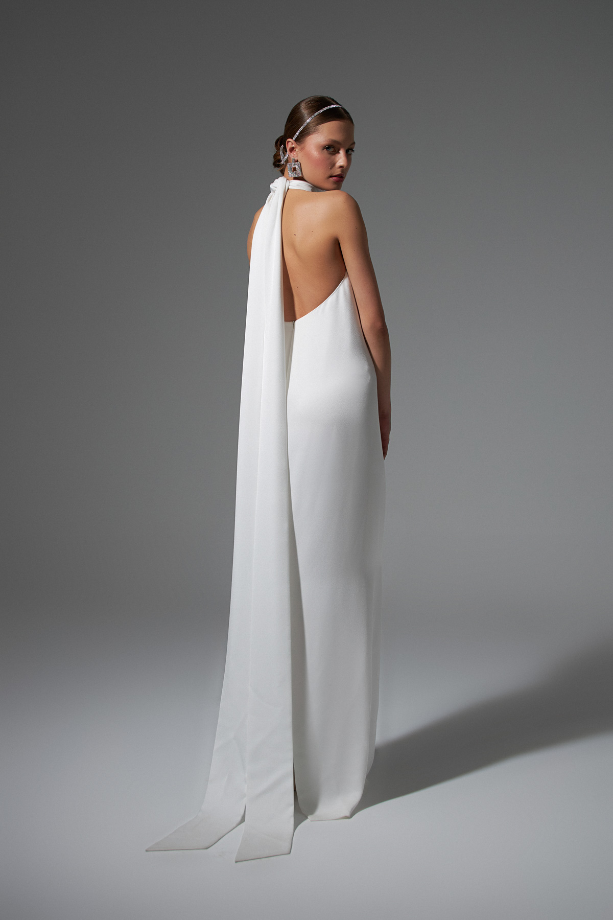 Misha Dress; Sırtı açık, fularlı, maxi boy elbise.