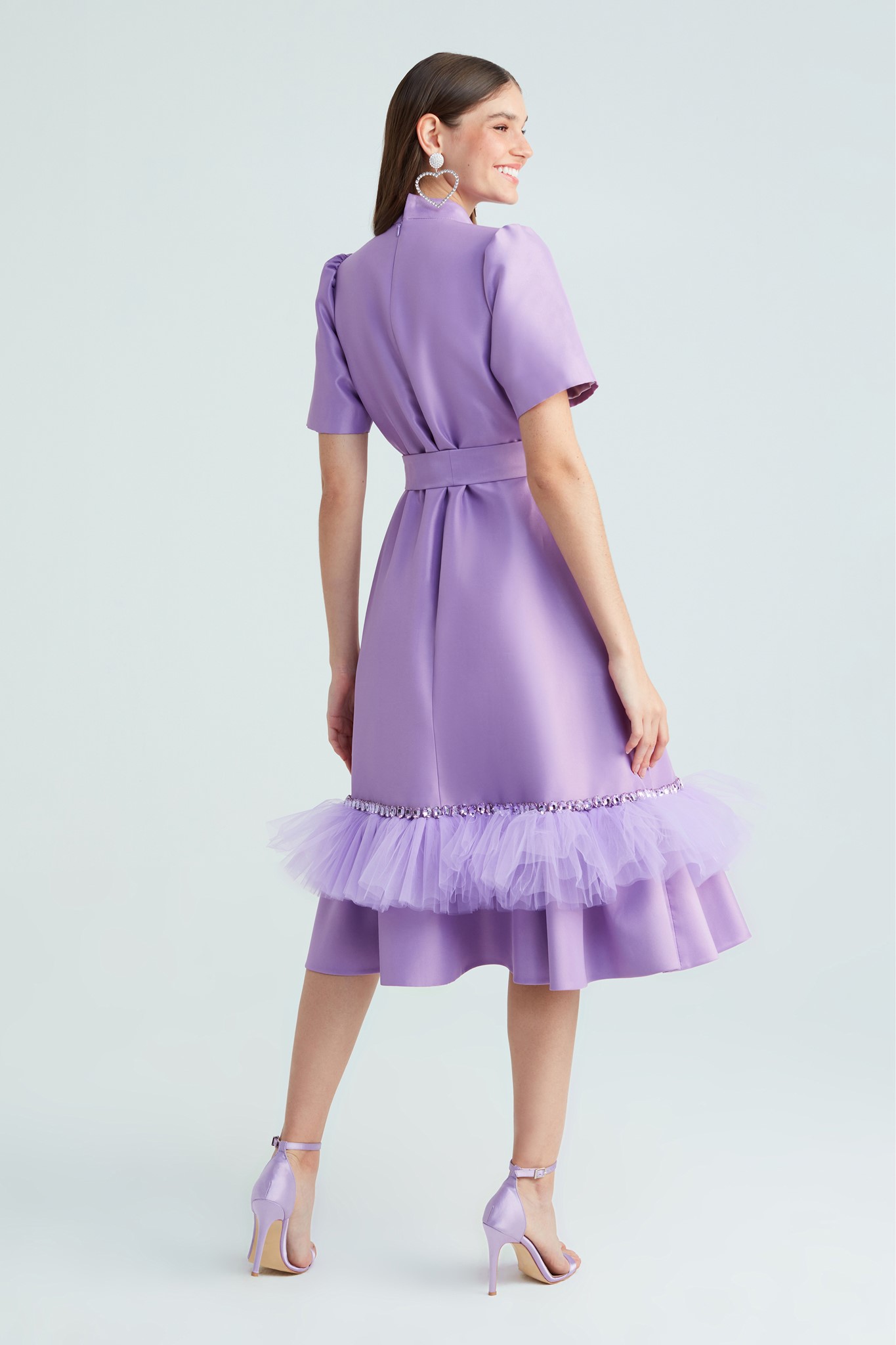 New Gina Uzn Dress; El işçiliği ile kristal taşlarla süslenmiş, eteğinde tütü detayı olan, kemer detaylı elbise.